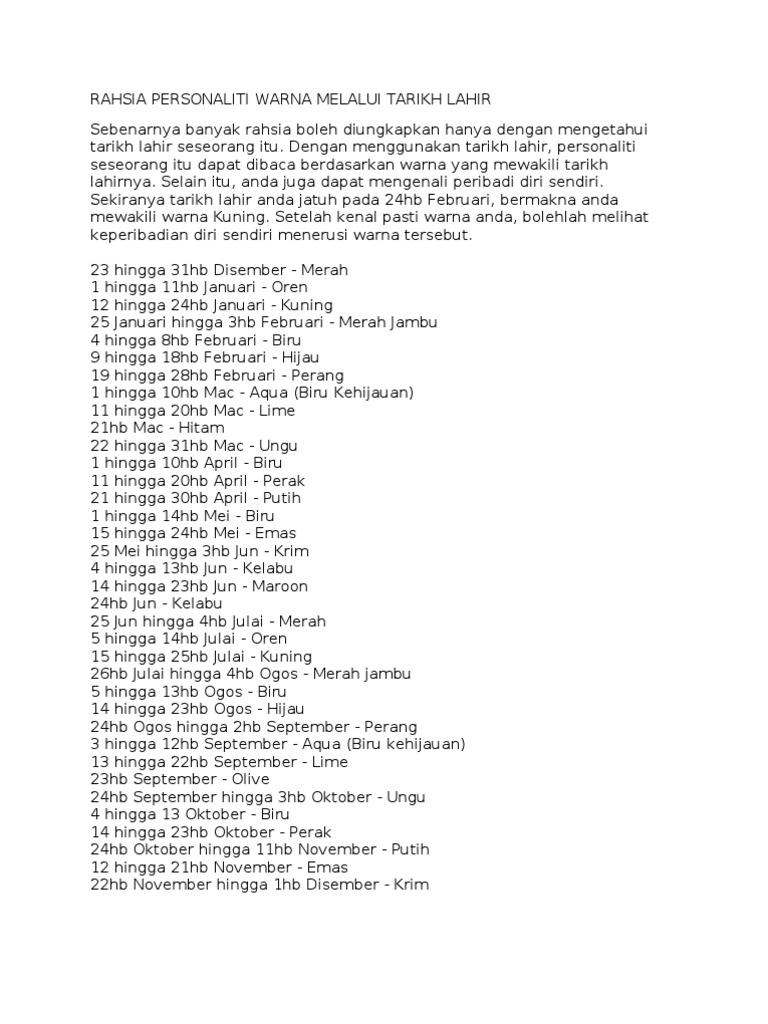 Rahsia Tarikh Lahir Dan Kod Warna Anda Pdf